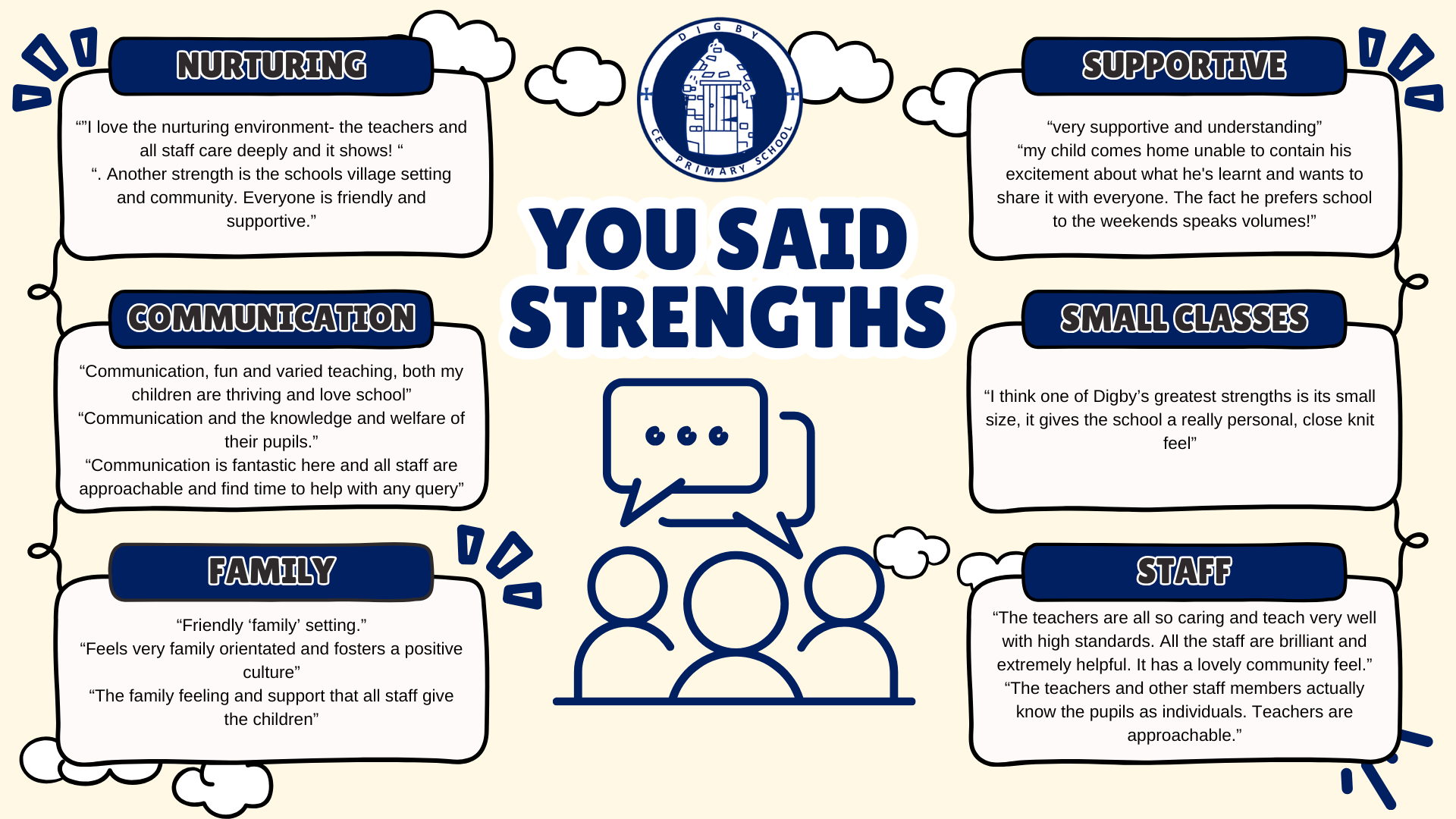 "The staff at Digby are committed, passionate and determined, to do their best to help bring out the best in each and every child. Not just on an academic level, but also to encourage and praise their individualities, to give them the confidence to be who they are, and to help nurture them into being compassionate and kind themselves."